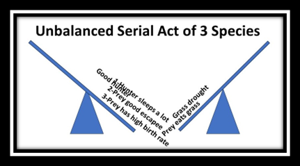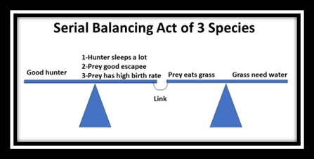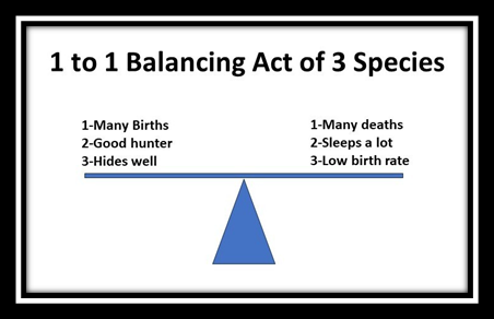 This balancing act can be represented by a teeter-tater. For the species to survive the teeter-tatter board must not touch the ground. If it does the species will go extinct. You may ask how this balancing act is achieved.
