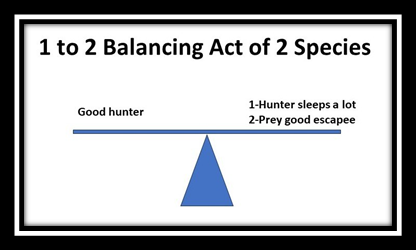 The slide above represents 2 ways a species keeps the teeter tatter in balance. If the species is a good hunter, then for it to keep the teeter tatter in balance it has the traits of sleeping a lot and has a low birth rate. It just so happens the lioness in the previous section has these two traits.
