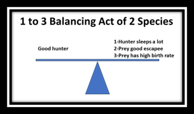The slide above is an example of a predator in balance with another species in three ways. First, the predator sleeps a lot. Second, the prey can outrun the predator while the prey also has a high birth rate.